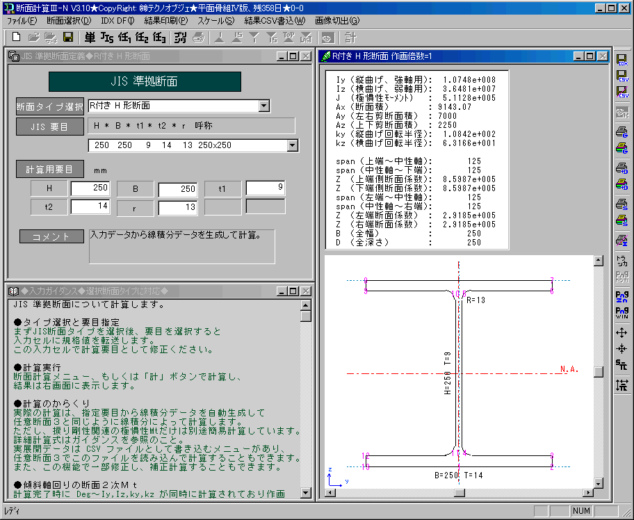 本図は、R付H形鋼を線積分で求めていますので、経路も表示しています。