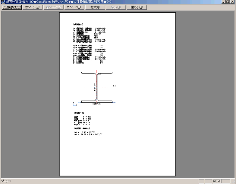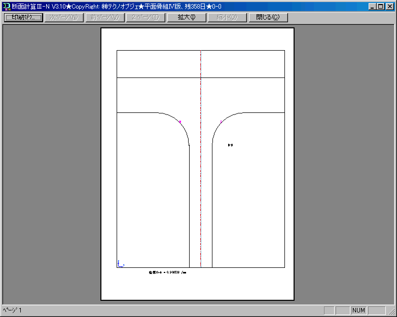 作画単独印刷の場合は、スケール、スクロールが反映されるため、断面の一部拡大図なども出力できます。