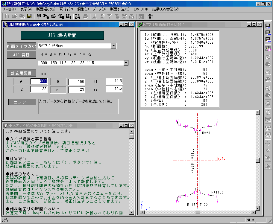R付JIS 断面、断面計算展開データDF書込み機能