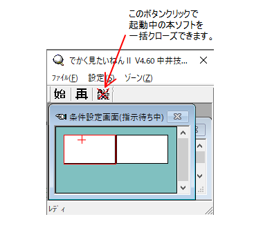 で解除し、モニタ画面を閉じ、主画面を元の位置、サイズで表示します。