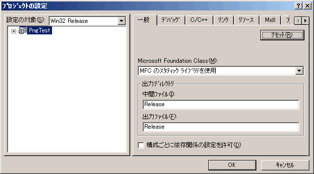 VC6 を立ち上げて、「ワークスペースを開く」で、この中の PngTest.dsw を選択してください。