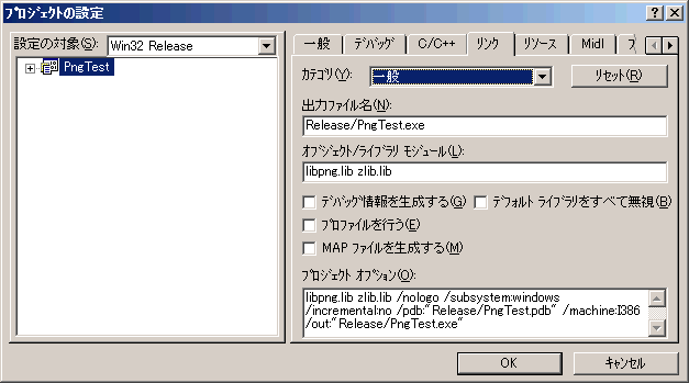 3) libpng.lib は libpng プロジェクトをコンパイルして作ったもの。